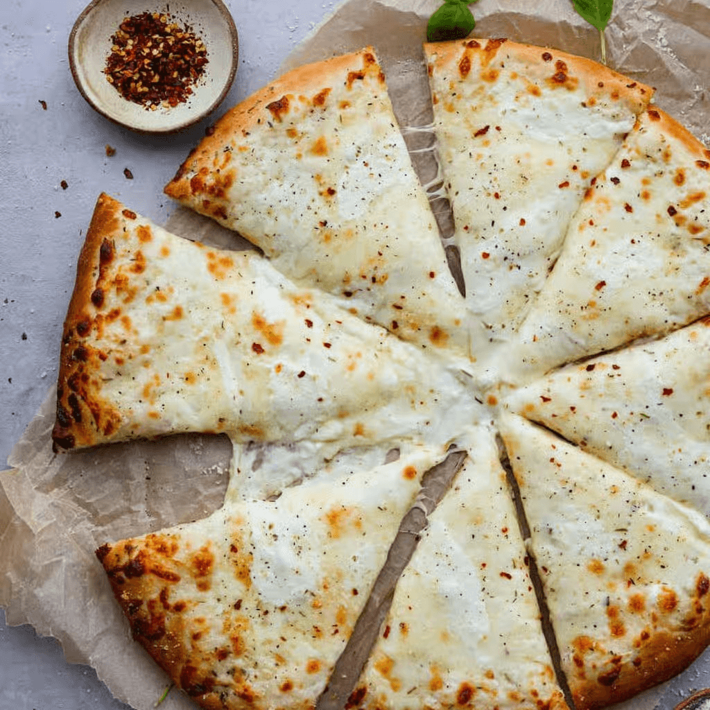 Fresh garlic, ricotta, and mozzarella cheeses. We have only 10” cauliflower crust pizza.
