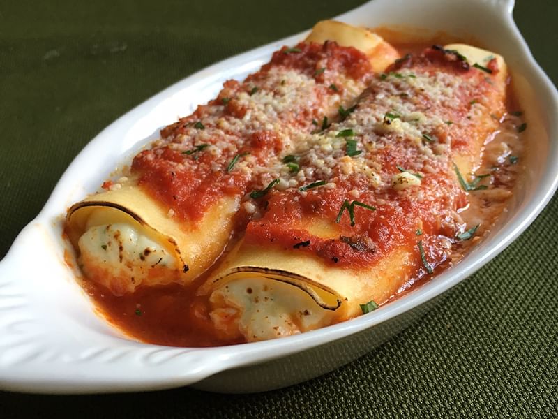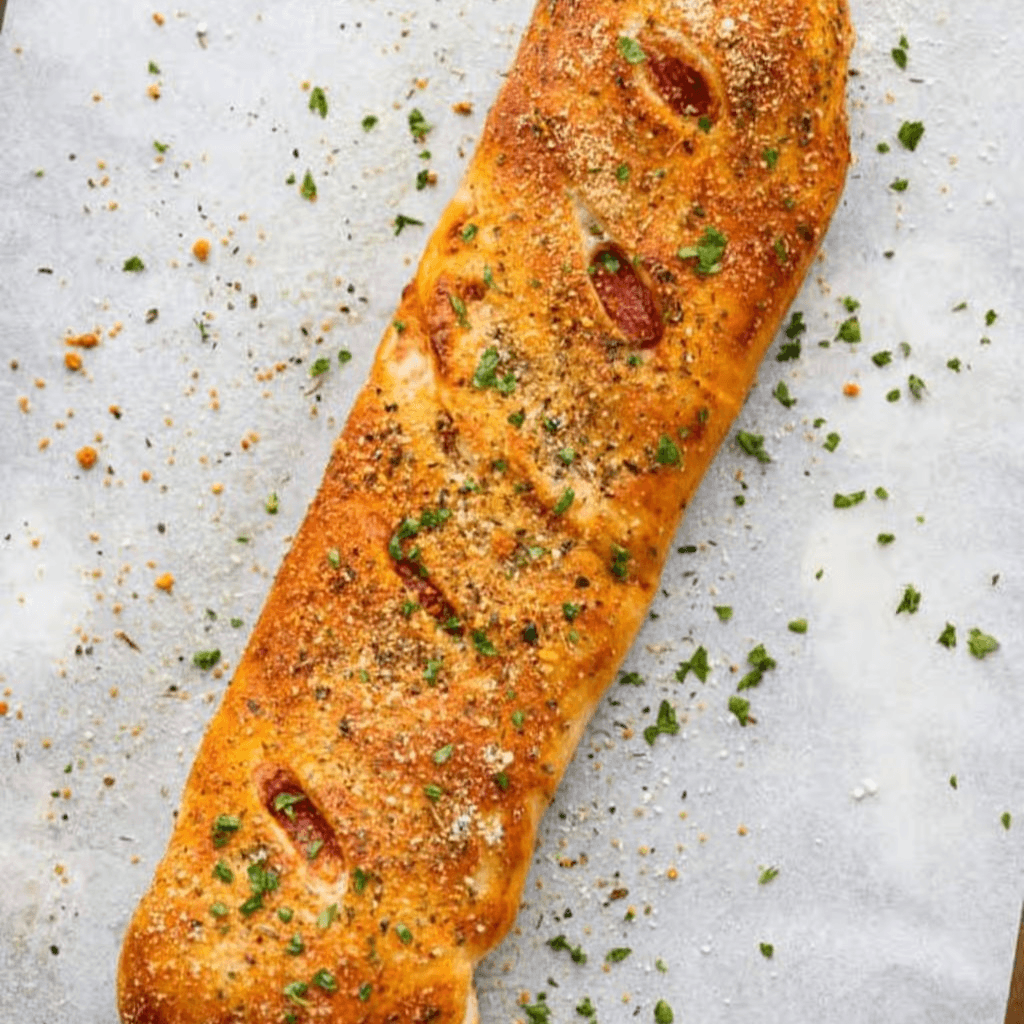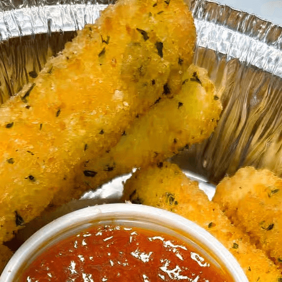 A golden, half-moon pocket filled with mozzarella and ricotta cheeses, served with a side of marinara