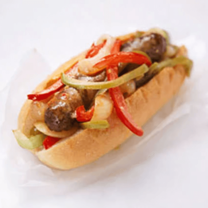 Sausage topped with sauteed onions and green peppers, served with a side of marinara