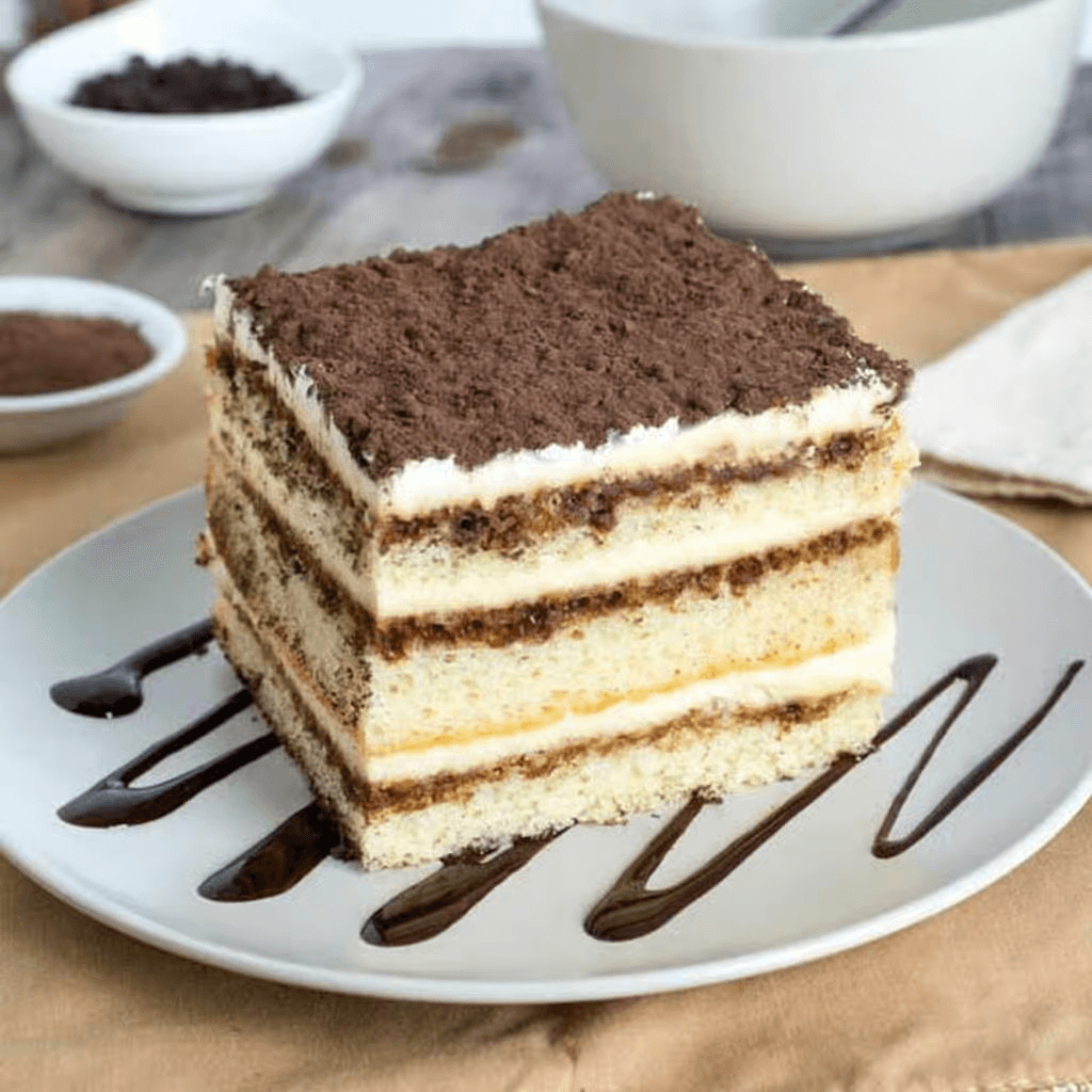 Pizza sauce, sausage, green pepper, onion, pepperoni, mushroom, and cheese. Square cut, 16 x 16 inch pizza