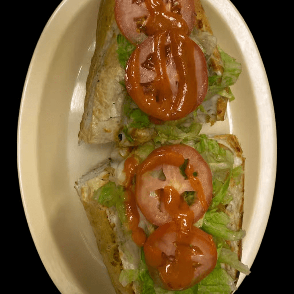 Grilled chicken, mild or hot sauce, lettuce, tomato, and onion