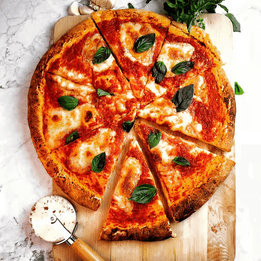 16" Sicilian, extra thin & crispy 16" x 16" marinara sauce, cheese, tomato, fresh basil, fresh garlic, and a drizzle of balsamic vinegar
